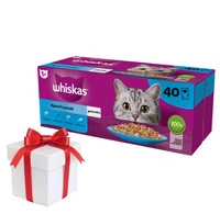 WHISKAS Vrecúška pre dospelých 40 x 85 g Rybie pochúťky - mokré krmivo pre dospelé mačky v želé (kusy s: losos, tuniak, treska, biela ryba) + prekvapenie pre mačku ZDARMA!