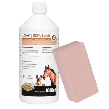( počet produktov: 15 )Lab-v Ľanový olej - 100% ľanový olej lisovaný za studena pre kone 1000 ml & Kerbl Delizia kamenná soľ na lizovanie pre kone, balenie 4 x 2 kg
