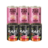 RAFI Cat Adult s kuracím mäsom 3x400g + WILD FARM Pate Chicken 3x400g