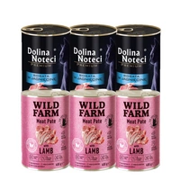 DOLINA NOTECI Premium pre sterilizované mačky s vysokým obsahom morčacieho mäsa 3x400g & WILD FARM Paštéta s jahňacím mäsom 3x400g - bezlepkové krmivo pre mačky