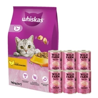 Whiskas s kuracím mäsom 14 kg + WILD FARM Pate Chicken 6x400g