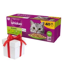 WHISKAS klasický výber v šťave pre dospelé mačky 40x85g + ZADARMO prekvapenie pre mačku!