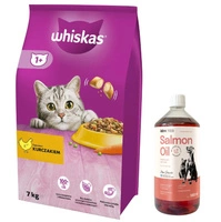 WHISKAS Adult 7 kg - suché krmivo pre dospelé mačky, s lahodným kuracím mäsom & LAB V Lososový olej pre psov a mačky 1000ml