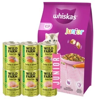 WHISKAS Junior chicken 14kg + WILD FARM Premium Grain Free Turkey and Salmon Junior 6x400g