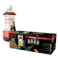 SHEBA Kitten príchuť balenie 40x85 g - kompletné vlhké krmivo pre mačiatka v omáčke (rezy s: losos, kura) & LAB V Lososový olej pre psov a mačky 1000ml