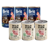 Brit Premium by Nature Bravčové mäso s prieduškami 3x400g & WILD FARM Pate Lamb 3x400g bezlepkové krmivo pre psov