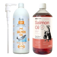 Brit Care Salmon Oil lososový olej 1000 ml & LAB V Lososový olej pre psov a mačky 1000ml