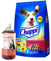 Chappi s hovädzím a hydinovým mäsom 9 kg & LAB V Lososový olej pre psov a mačky 1000ml