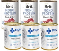 BRIT MONO PROTEIN LAMB & BROWN RICE 3x400g & ENZO VET Hypoalergénne hypoalergénne krmivo s morkou pre psov 3x400g