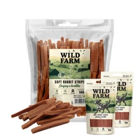WILD FARM mäkké kačacie prsia 500g pre psa & WILD FARM králičie prúžky 2x80g psia maškrta