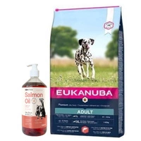 Eukanuba Adult Large Salmon&Barley 12kg & Lab-v Lososový olej 100% pre psy a mačky 1000 ml