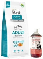 BRIT CARE Grain-free Adult Salmon 12kg & LAB V Lososový olej pre psov a mačky 1000ml
