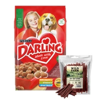 PURINA Darling s lahodnou zmesou hovädzieho a kuracieho mäsa 10 kg + Hovädzie tyčinky WILD FARM 500g psia maškrta
