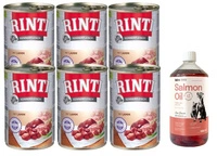 Rinti Kennerfleisch Junior Rind mokré krmivo pre psov - hovädzie mäso 6x400g + LAB V Lososový olej pre psov a mačky 1000ml