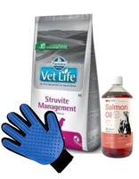 Farmina Vet Life dog Struvite management 12 kg & LAB V Lososový olej pre psov a mačky 1000ml + Rukavica na česanie srsti psov a mačiek ZADARMO!