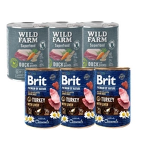 Brit Premium by Nature Turkey With Liver 3x800g + WILD FARM Superfood Duck 3x800g