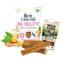 Brit Dental Stick Mobility Curcuma & Collagen 3x251 g & WILD FARM mäkké kuracie prsia 3x80g psia maškrta