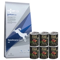 TROVET RRD Hypoallergenic - Rich in Rabbit (pre psov) 10 kg & WILD FARM Mix príchutí 2x500g