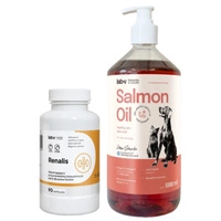 LAB-V Renalis - Podpora pri chronickom zlyhaní obličiek pre psy a mačky 90 kapsúl & LAB V Lososový olej 1000ml
