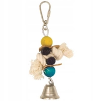 Závesná hračka pre domáce zvieratá Panama vyrobená z dreva, kože a šnúrky so zvončekom, 17 cm